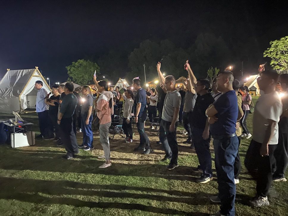 活動在一片歡聲笑語中開始了,熱身破冰活動快速調(diào)動起活動氛圍。接著大家隨機(jī)分為四組,通過集體選出隊(duì)長和隊(duì)秘、創(chuàng)建隊(duì)名、隊(duì)形、口號,迅速形成四支擁有共同目標(biāo)的團(tuán)隊(duì)。在隨后進(jìn)行的趣味游戲、快樂駕駛,飛盤競賽等一系列團(tuán)隊(duì)小活動中,各隊(duì)充分發(fā)揮團(tuán)隊(duì)精神,充分展示了隊(duì)員們的團(tuán)結(jié)、智慧和組織能力、執(zhí)行力?!绑艋鹜頃笔菆F(tuán)建活動的高潮,所有人在教練的帶領(lǐng)下載歌載舞,歡聲笑語縈繞在半空,在各種各樣的互動小游戲中盡情放松,在工作之余充分釋放了壓力。團(tuán)隊(duì)的力量,伴著熊熊篝火逐漸聚攏,彼此牽著的手也傳遞著我們最真誠最美好的心愿,共同祝愿水利院明天更加輝煌!